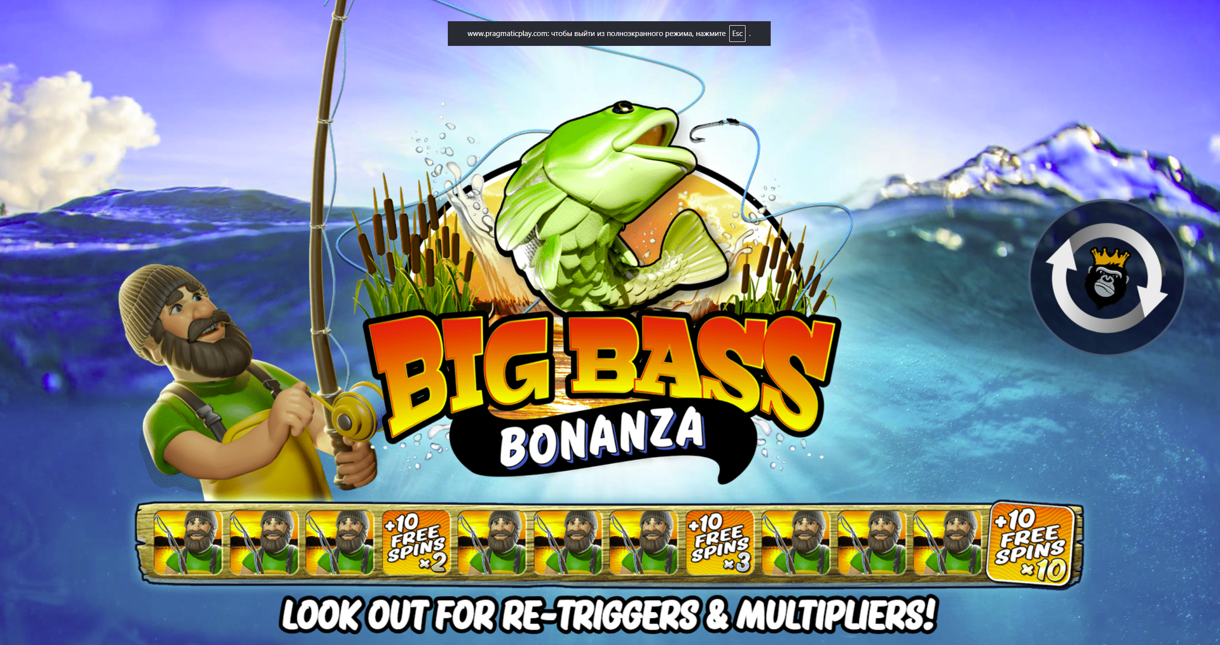 You start with 10 free spins. During this round, special money symbols (fish with cash values) can land. Each time a fisherman wild appears, he collects the values of all money symbols currently on the reels. Furthermore, every collection awards +1 extra free spin. Money symbols can also land with multiplier values (2x, 3x, etc.), which are applied to any collected amounts, leading to rapidly escalating wins.